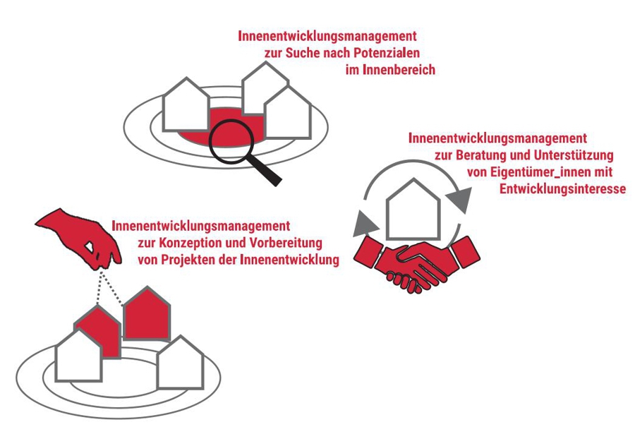 Das Ziel des Innenentwicklungsmanagements war es, die Eigentümer zu aktiven Mitstreitern ihrer eigenen Grundstücksentwicklung zu machen. Sie sollten die Möglichkeit erhalten, sich unverbindlich und kostenlos über die Potenziale ihrer Grundstücke zu informieren und, unterstützt durch das IEM, eine fundierte Entscheidung für die zukünftige Entwicklung zu treffen. In zahlreichen Eigentümerversammlungen und Gesprächen konnte MESS eine Vielzahl von Motivationen und Unsicherheiten der Eigentümer identifizieren, die als Grundlage für die weiteren Planungen dienten.