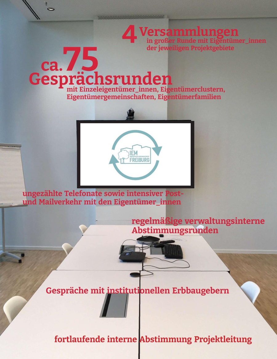 Im Jahr 2019 bewarb sich die Stadt Freiburg erfolgreich um eine Förderung im Rahmen des Programms „Flächen gewinnen durch Innenentwicklung“, um zusätzlichen Wohnraum durch die Entwicklung bestehender Flächen zu schaffen. Die Aufgabe von MESS als Innenentwicklungsmanager war es, informelle Konzepte der Innenentwicklung auf ihre Umsetzbarkeit zu überprüfen und weiterzuentwickeln. Dabei lag der Fokus auf einer intensiven Abstimmung mit den Eigentümern, um deren Perspektiven und Bedenken in den Planungsprozess einzubeziehen und eine solide Grundlage für die weitere Planung zu schaffen.