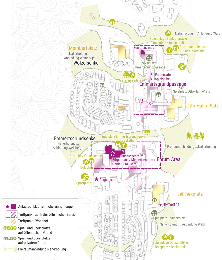 Die Stadt Heidelberg hat die fachliche, grafische und textliche Begleitung im Zuge der Erstellung zweier Integrierter Handlungskonzepte (IHK) für das Quartier Westliches Bergheim und den Stadtteil Emmertsgrund. Ziel der Konzepte ist es, eine Zukunftsvision für die beiden Gebiete zu entwickeln, die bauliche, soziale, öffentliche und private Maßnahmen integriert. Während das Westliche Bergheim als wichtiger Eingang zur Stadt durch zahlreiche städtebauliche Projekte im Wandel steht, soll das IHK für den Emmertsgrund die bisherigen Maßnahmen aus dem Programm „Soziale Stadt“ fortführen und weiterentwickeln. Beide Konzepte sollen als strategische Leitlinien dienen und den Transformationsprozess in den Stadtteilen strukturieren.