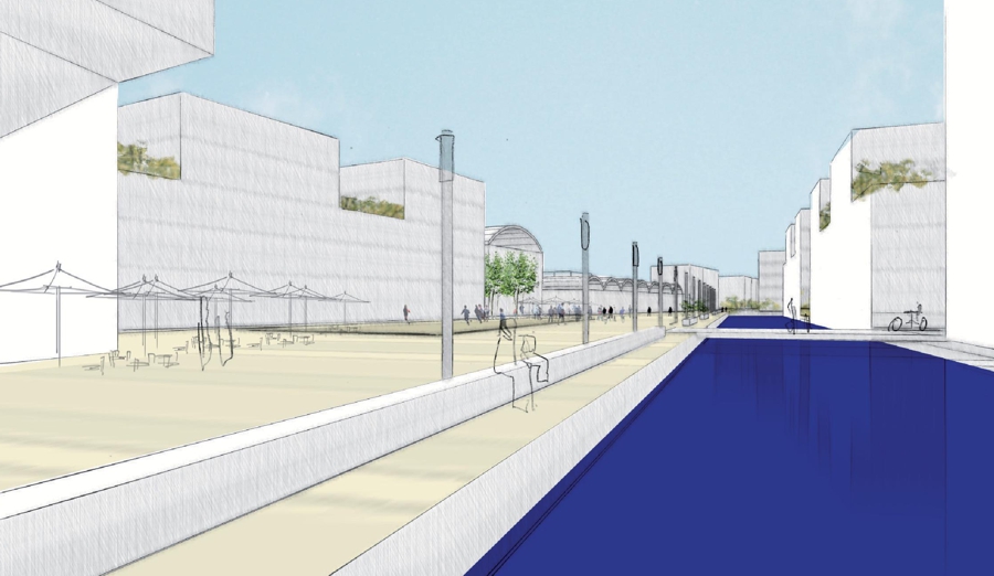 Im Zuge der Neuentwicklung des Areals kommt insbesondere dem Umgang mit dem Bestand und der Ablesbarkeit des industriellen Erbes große Bedeutung zu. Dies umfasst zum einen den Erhalt prägender und wertvoller Bauten sowie deren Um- und Neunutzung. Zum anderen auch den Erhalt der räumlichen Grundkonfiguration des Areals und seiner „Richtungen“. Im Rahmen der Ausbildung von Baufeldern steht auch die Auseinandersetzung mit dem öffentlichen Raum, mit der Schaffung qualitätvoller Freiräume und Platzflächen sowie attraktiv gestalteter Uferzonen im Fokus. Die Einbindung des neuen Quartiers in seine naturräumliche Umgebung sowie die enge Vernetzung von Frei- und Siedlungsräumen sind zentrale Aufgaben. Ebenso die Integration zu erhaltenden Bestands in die neue Bau- und Nutzungsstruktur.