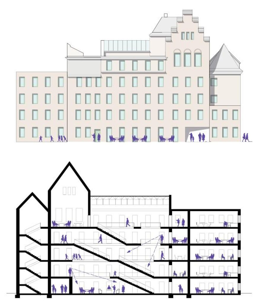 Das Ergebnis des Entwurfs sieht eine behutsame Neugestaltung vor, bei der die „Blöcke“ der vier wichtigen Baufelder – Tersteegen-Haus, Hafthaus, Amtsgericht und das neu zu bebauende Gelände – um den historischen Hof des Hafthauses gruppiert werden. Diese Blöcke werden durch Fassaden und Grünflächen miteinander verbunden, wobei das verschlossene Innere des Plangebiets nun durch diese neue Offenheit an Lebensqualität und Urbanität gewinnt.