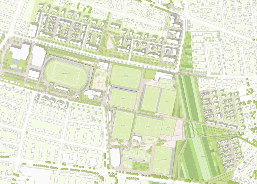 Der Entwicklungsbereich im Osten Ludwigsburgs zwischen den Stadtteilen Oststadt und Oßweil stellt einen vielseitigen Raum mit großem Potenzial dar. Hier treffen Sportflächen von stadtweiter Bedeutung auf ehemalige Gärtnereiflächen sowie landwirtschaftlich geprägte Freiräume. Gleichzeitig grenzen diese Nutzungen an bisher unstrukturierte Siedlungsränder. Ziel des Projekts war es, eine ganzheitliche städtebauliche und freiräumliche Entwicklungsperspektive zu erarbeiten, die die unterschiedlichen Funktionen in ein schlüssiges Gesamtkonzept integriert.