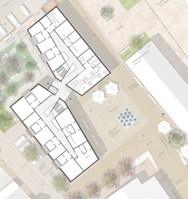 Das Ergebnis ist ein lebendiges Zentrum, das Tradition und Moderne vereint. Die Neubauten und angrenzenden Grün- und Platzbereiche respektieren die historische Bedeutung des Schlosshofes und bieten gleichzeitig Raum für vielfältige Nutzungsmöglichkeiten. Der barocke Schlosshof wird durch die neuen Gebäude räumlich gefasst, wodurch eine attraktive Mischung aus urbaner Dichte und ruhigen Grünflächen entsteht, die die Ortsmitte nachhaltig belebt und die Lebensqualität in Mönchzell steigert.