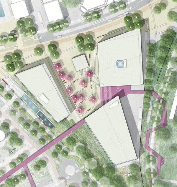 Das Ergebnis ist ein neuer urbaner Knotenpunkt, der nicht nur die verschiedenen Teile der Stadt miteinander verbindet, sondern auch einen Raum für Nutzung, Bewegung und Verweilen bietet. Das Forum als zentrale Platzfläche im Herzen des neuen Quartiers schafft ein lebendiges Umfeld, das sowohl für die Anwohner als auch für Besucher eine hohe Attraktivität besitzt und das urbane Leben in dieser Gegend nachhaltig bereichert.