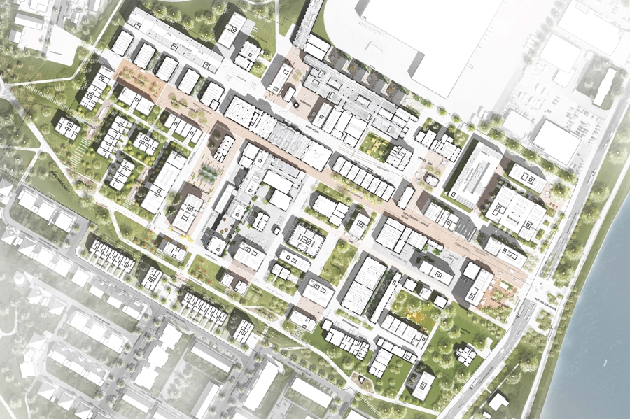 Die Vorgehensweise bei der Erstellung des Masterplans umfasste eine umfassende Analyse der Ausgangssituation, inklusive der bisherigen Nutzung und Verkehrssituation des Areals. Ein offener Prozess mit Beteiligung öffentlicher Akteure und Bürgern führte zu einem städtebaulichen Konzept, das den Raum effizient nutzt und gleichzeitig eine hohe Lebensqualität bietet. Der Plan konzentriert sich auf die Schaffung eines lebendigen, urbanen Quartiers, das mit einer Mischung aus Wohnflächen, Büros, Dienstleistungen und Freizeitmöglichkeiten ein modernes, sozial durchmischtes Umfeld bietet. Der öffentliche Raum wird durch ein Netz von Freiräumen und Bewegungsachsen neu organisiert.