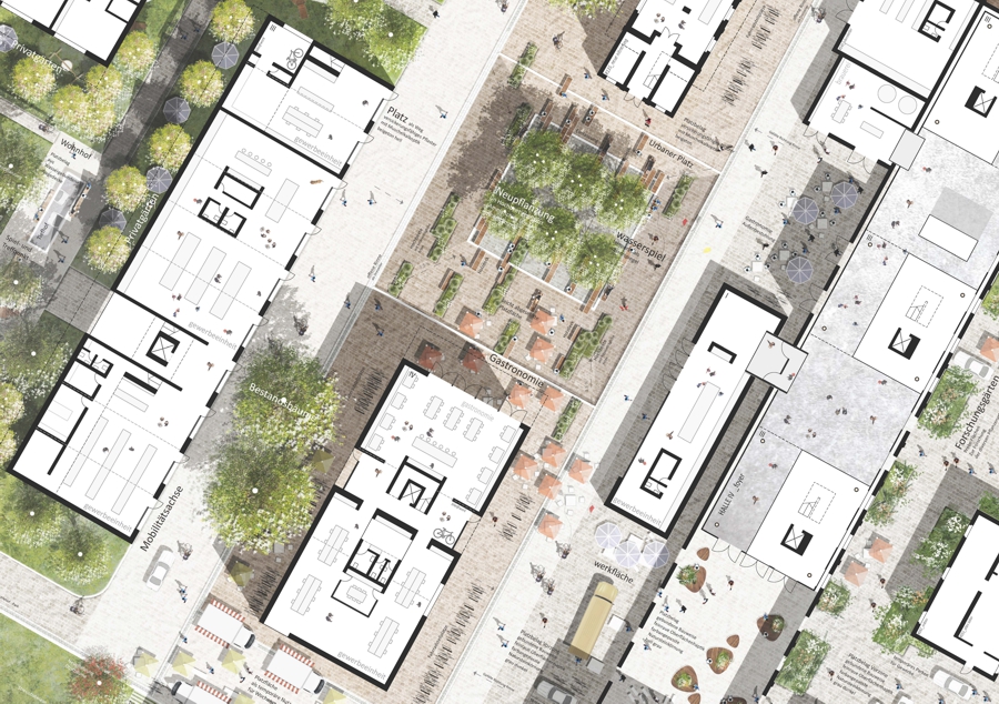 Leistungen: zweiphasiger kooperativer städtebaulicher Einladungswettbewerb mit freiraumplanerischer Vertiefung