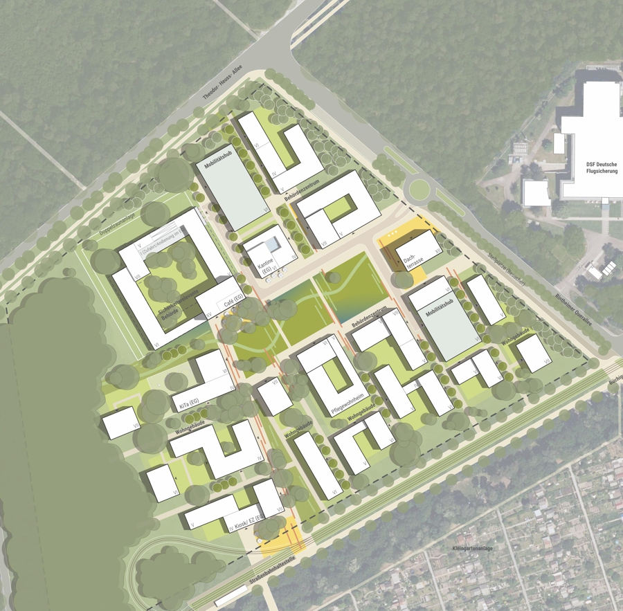 In Zusammenarbeit mit: AAg Loebner Schäfer Weber BDA Freie Architekten GmbH; GDLA Gornik Denkel Landschaftsarchitektur PartGmbb, Heidelberg; Durth Roos Consulting GmbH (Verkehrsplanung), Darmstadt