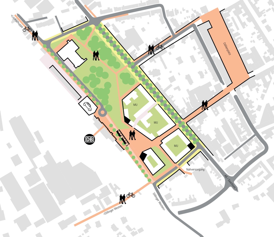 Der Masterplan für das Rathauscarrée in Dillingen wurde entwickelt, um auf mehrere städtebauliche Herausforderungen und Chancen zu reagieren. Zentrale Anlässe sind der Abriss des ehemaligen Dillinger Kaufhauses, der Erwerb des Postareals durch die Stadt und die Umgestaltung des Freiraums zwischen dem Bahnhof, der Stummstraße und dem Stadtpark. Ziel ist es, diese Areale zu revitalisieren, einen attraktiven urbanen Raum zu schaffen und die Stadtstruktur zu stärken, indem die Bereiche Bahnhof, Stadtpark und Innenstadt besser miteinander verknüpft werden.