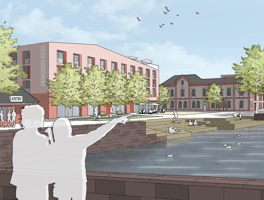Dies führt im Ergebnis zu einem attraktiven mischgenutzten Quartier, in dem sich die Historie des Ortes widerspiegelt, das auf vielfältige Weise mit den umgebenden Grünstrukturen und Wasserbereichen verknüpft ist und für alle Verkehrsarten gut an die Innenstadt angebunden ist. Das Brinkhaus-Quartier als lebendiger Stadtbaustein Warendorfs!